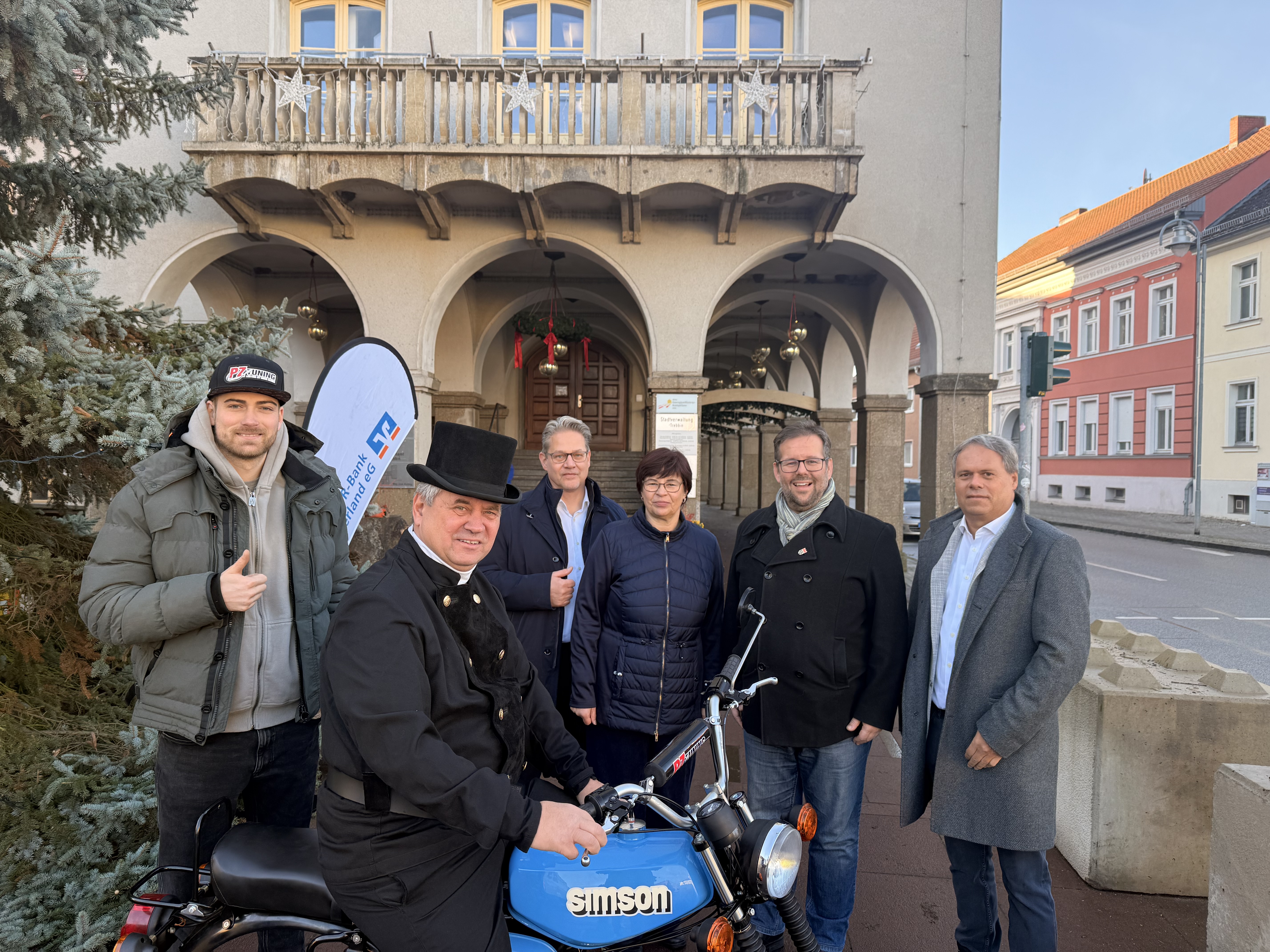Hier wurde die im Herbstferienprojekt aufgebaute Simson feierlich an Bezirksschornsteinfeger Steffen Hölscher übergeben – direkt vor dem Rathaus Trebbin. Ein Moment, der zeigt, was Jugendengagement und Handwerk bewegen können.