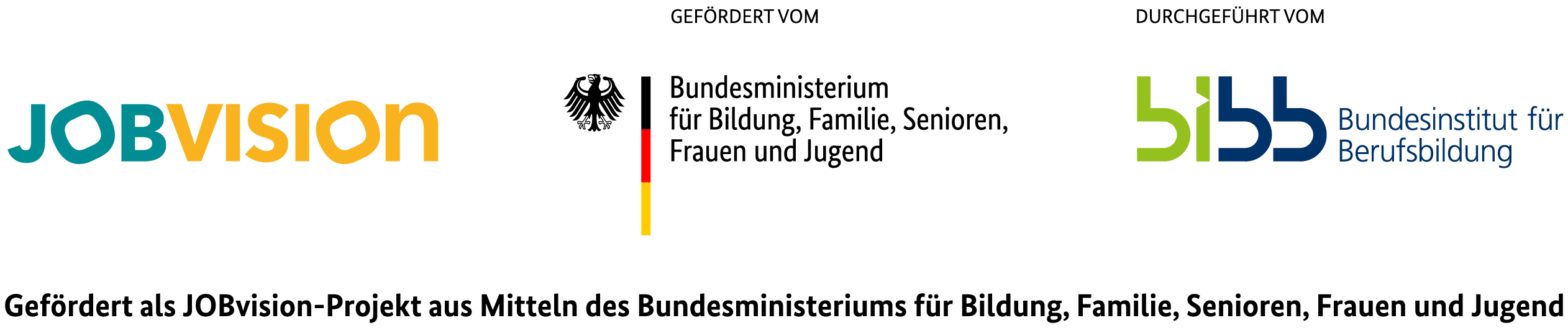 Mit der Initiative JOBvision fördert das Bundesministerium für Bildung, Familie, Senioren, Frauen und Jugend bundesweit Projekte, die innovative Lösungen für kleine und mittlere Unternehmen (KMU) entwickeln und erproben, um vakante Ausbildungsplätze nachhaltig zu besetzen, den Fachkräftebedarf in KMU zu decken und die duale Ausbildung zu modernisieren. Durchgeführt wird die Initiative vom Bundesinstitut für Berufsbildung (BIBB)